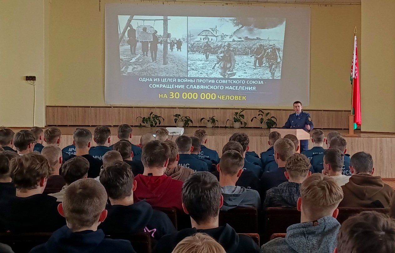 Сергей Юрьевич рассказал о ходе расследования уголовного дела о геноциде белорусского народа в годы Великой Отечественной войны, привел актуальные данные, в том числе о количестве полностью и частично уничтоженных немецкими захватчиками и их пособниками на территории Пружанского района населенных пунктов, остановившись на чудовищных преступлениях фашистов в отношении детей.