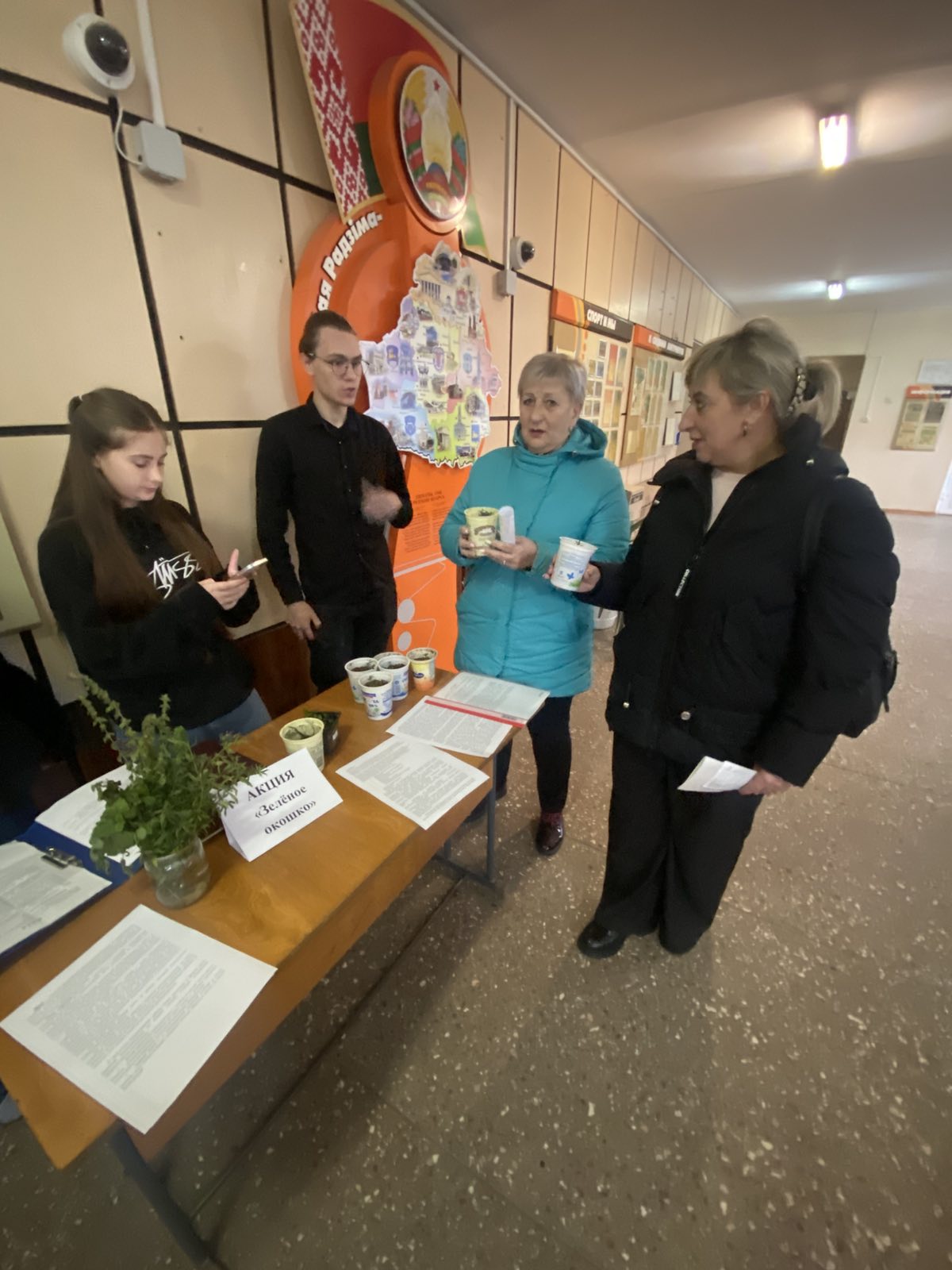 Учащиеся агротехнологического отделения под руководством преподавателя Парфинович Ларисы Леонидовны создавали позитивное настроение, преподнося участникам акции подарки - эстетически оформленную рассаду пряно-ароматических культур с просьбой о дальнейшем уходе за ней согласно предложенным рекомендациям.