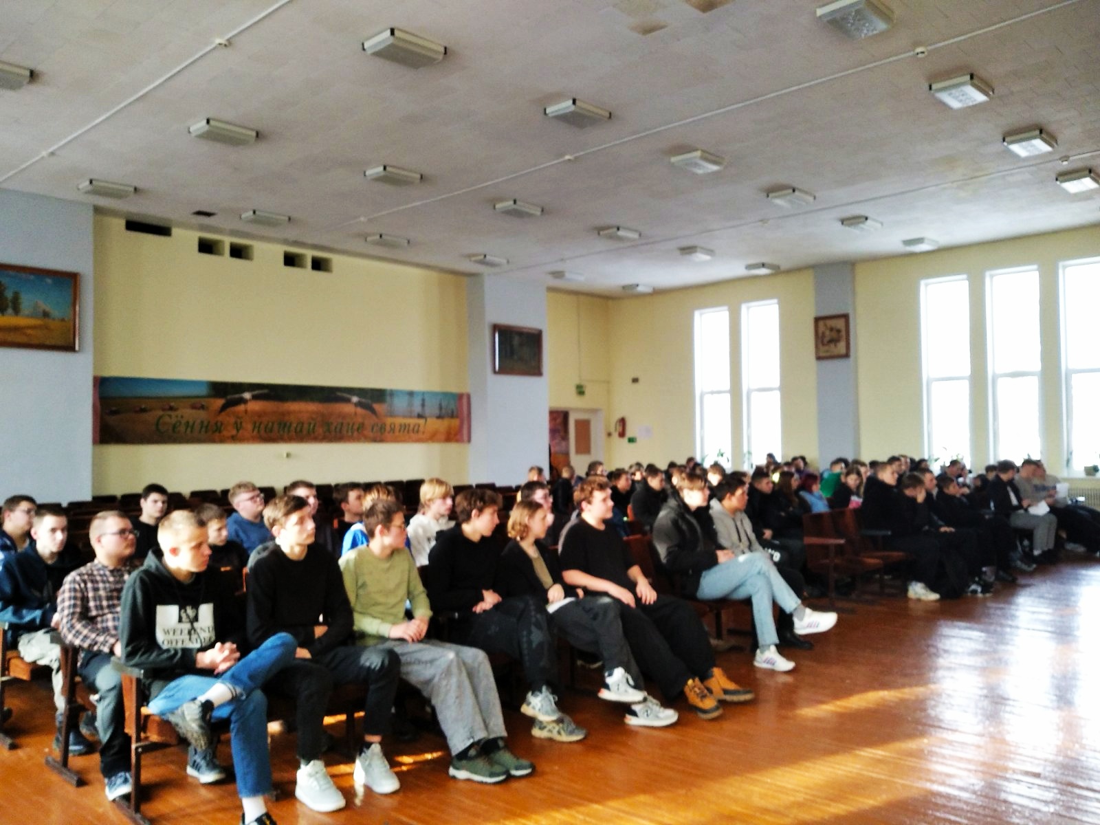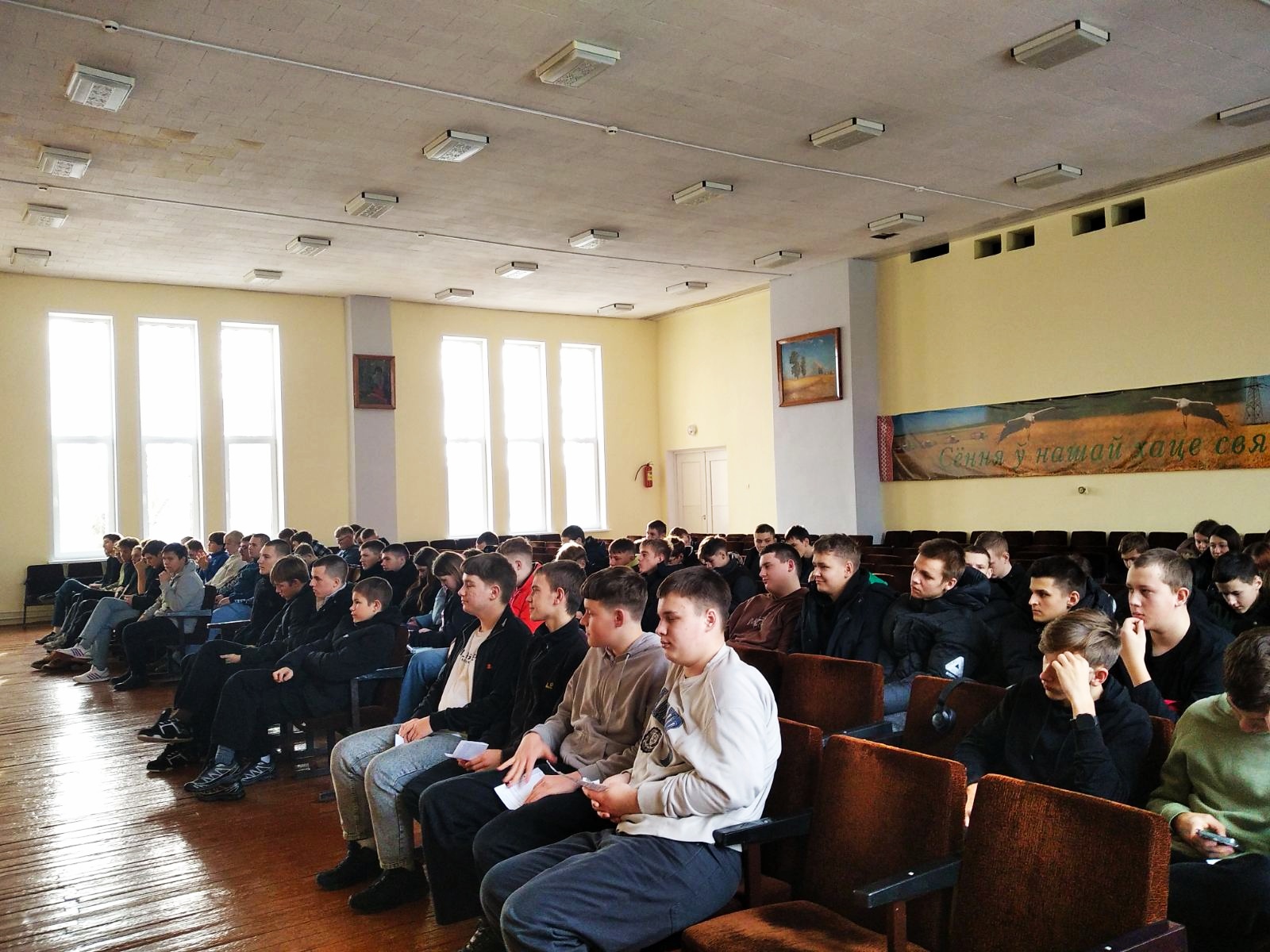 О трагической истории деревни Ола, схожей с историей Хатыни, рассказали руководитель военно-патриотического воспитания и учащиеся группы 2-67. В этот день, 14 января 1944 года, фашистами было уничтожено 1758 жителей деревни Ола, включая 950 детей, 508 женщин, 100 мужчин и 200 стариков. Ребята почтили минутой молчания память погибших.