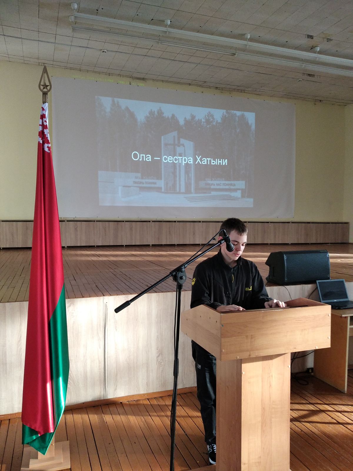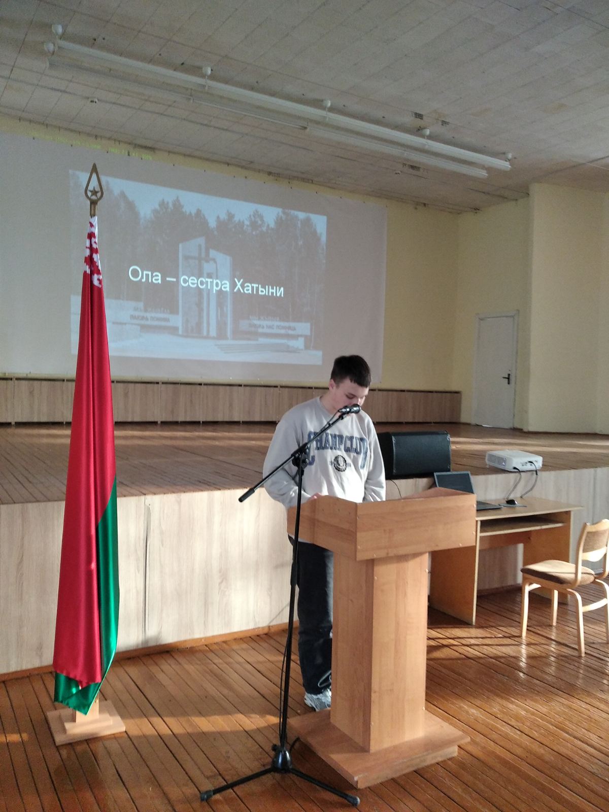 14 января в актовом зале для учащихся 1-го курса прошел единый урок на тему «Ола - сестра Хатыни», посвященный сохранению исторической правды о событиях и последствиях Великой Отечественной войны.