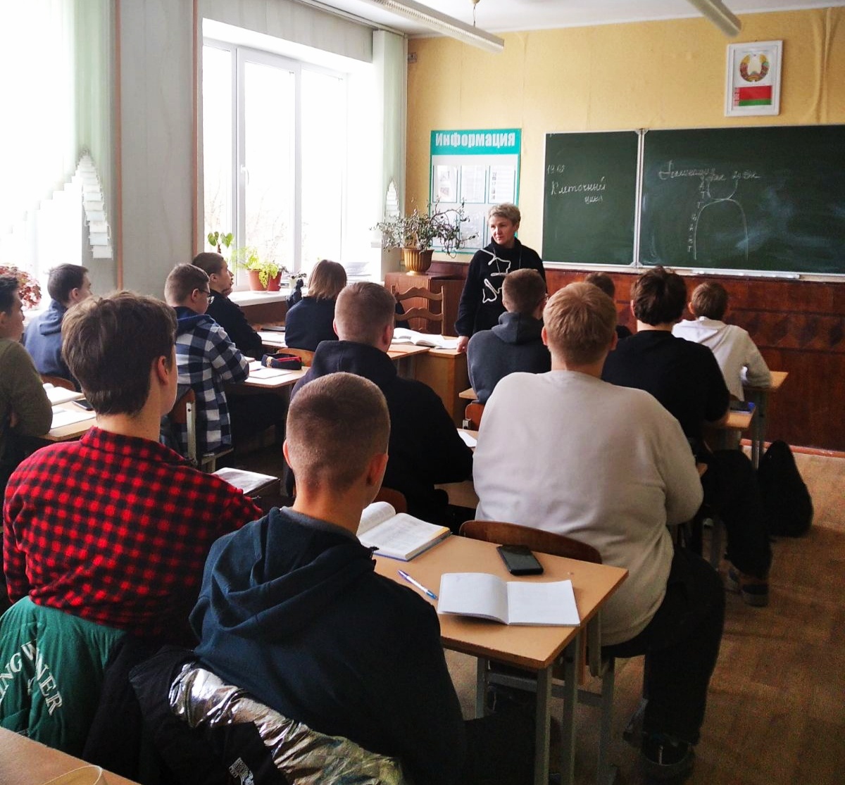 В рамках мероприятий, приуроченных ко Дню памяти воинов – интернационалистов, для учащихся групп 9-0, 2-76, 2-77, 2-78, 6-83 проведена историческая пятиминутка «Отголоски Афганистана». Ребята узнали о военно-политической обстановке, которая сложилась накануне афганской войны, о героизме солдат, о силе человеческого духа, о дружбе, о братстве, которое не подвластно времени. Среди воинов-интернационалистов, воевавших в Афганистане, было около 32000 белорусов, 800 из них не вернулись домой. О наших земляках, которые мужественно сражались на чужой земле, рассказал преподаватель допризывной подготовки Рабчук Дмитрий Павлович во время проведения урока памяти «В их судьбе была война».