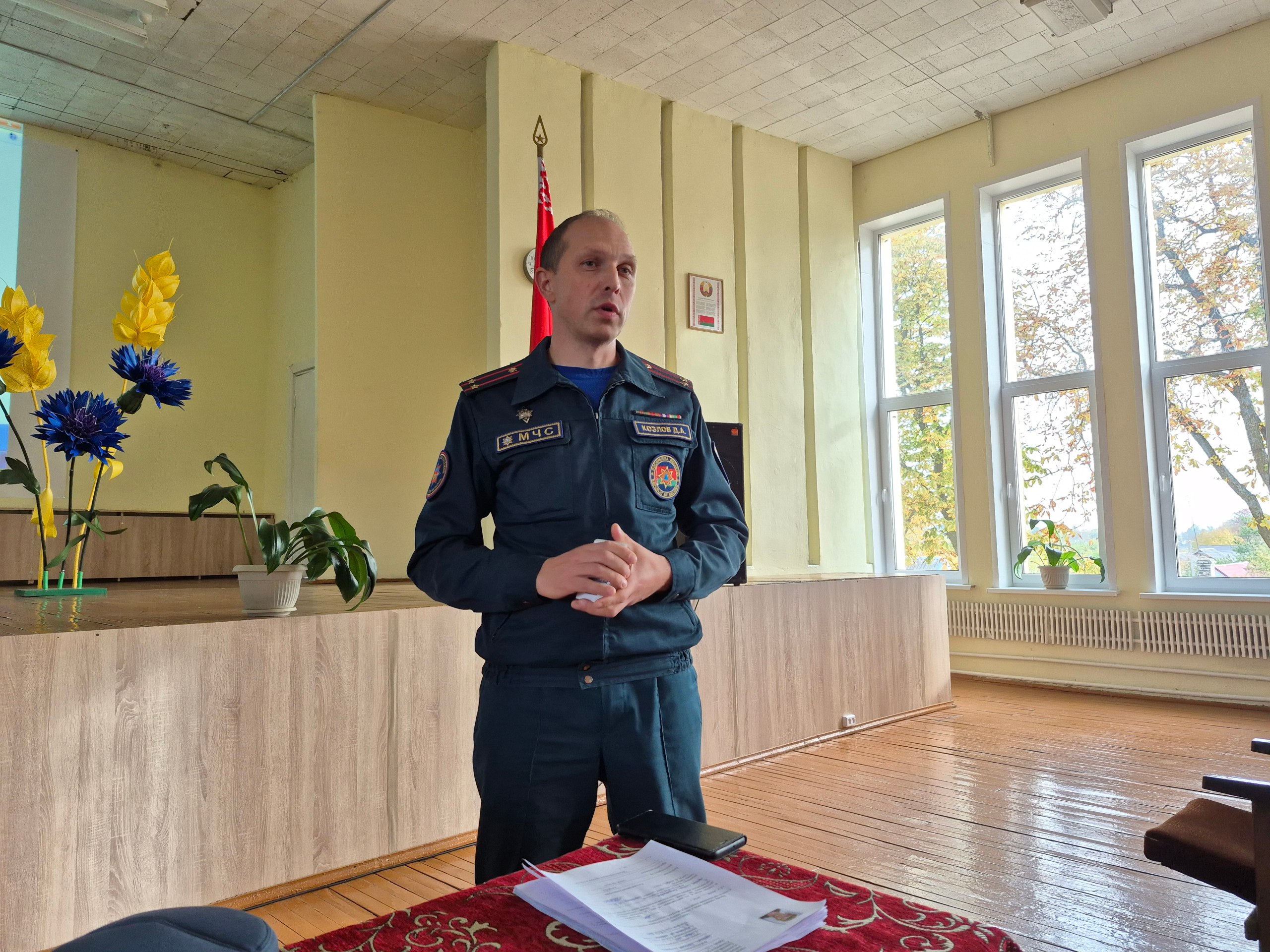 Дмитрий Козлов, заместитель начальника Пружанского РОЧС, поздравил ребят с ответственным шагом и пожелал им быть достойными продолжателями традиций мужества и отваги.