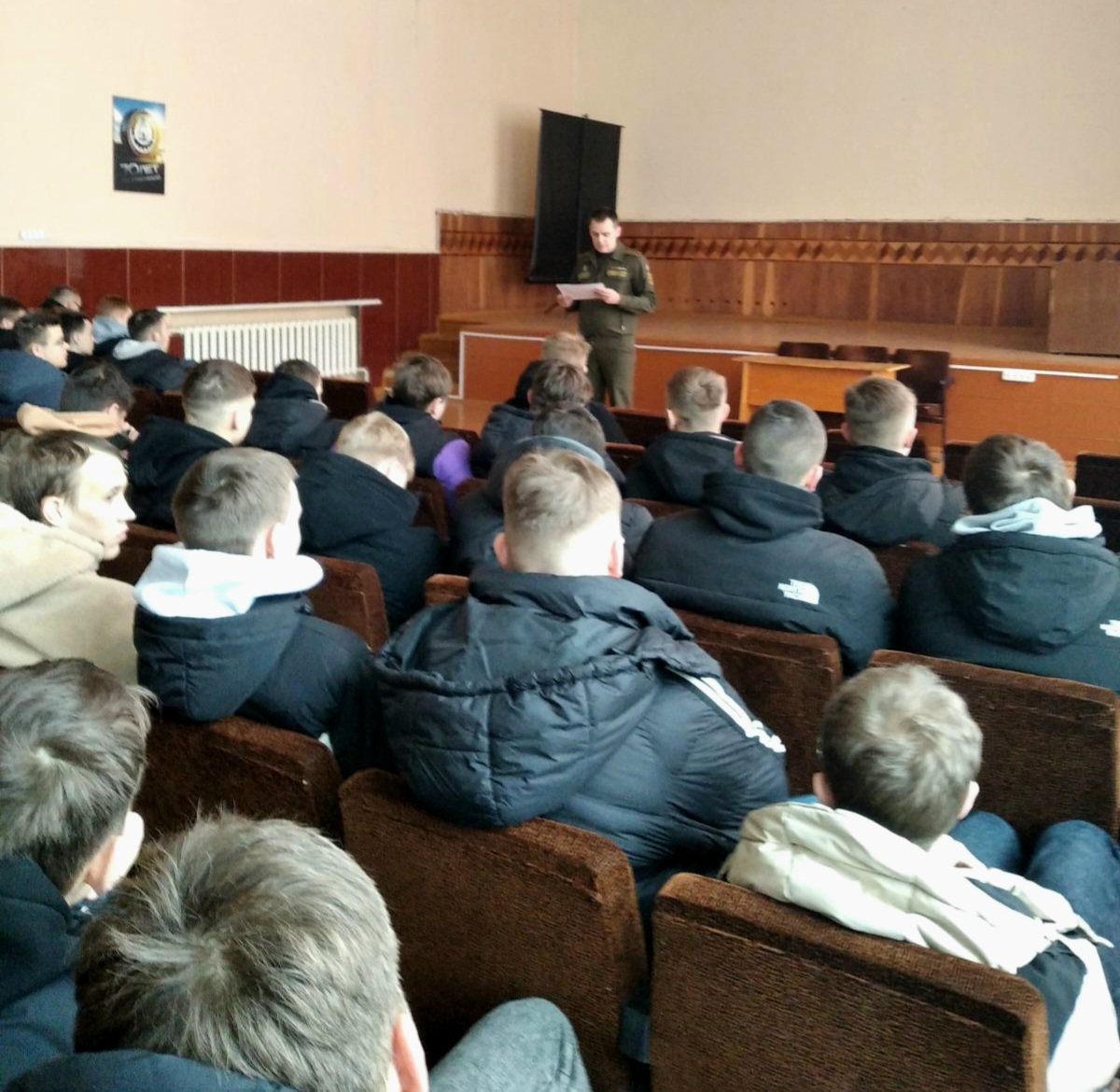 В малом актовом зале 18 февраля для учащихся групп 2-70, 6-81 и 2-74 была организована встреча с начальником группы призыва на военную службу военного комиссариата Пружанского района Якимовичем Андреем Игоревичем.