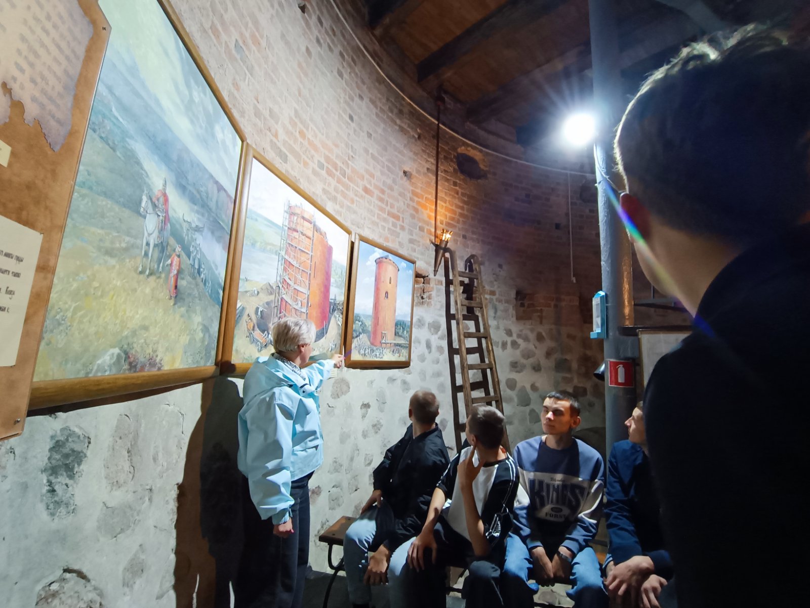 Свой рассказ экскурсовод начала с внешнего обзора башни, затем провела ребят по всем уровням. В ходе экскурсии учащиеся увидели артефакты, найденные в ходе раскопок, узнали о значении башни для защиты от внешних угроз.