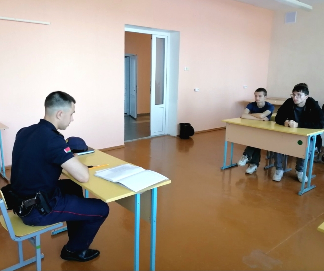 Инспектор ИДН Ковалев В.М. провел инструктаж с учащимися по поводу поведения во время каникул и практики. Воспитатель Карпей М. Н. познакомила с требованиями безопасности при проведении работ в летнем трудовом лагере.