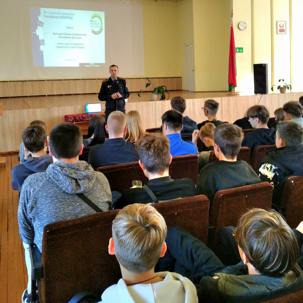 25 сентября в колледже прошёл информационный час для учащихся 1-го курса в рамках реализации проекта «Школа Активного Гражданина». Темой встречи стало формирование гражданской ответственности и патриотизма под девизом: «Быть достойным гражданином Республики Беларусь — быть преданным своей Родине».