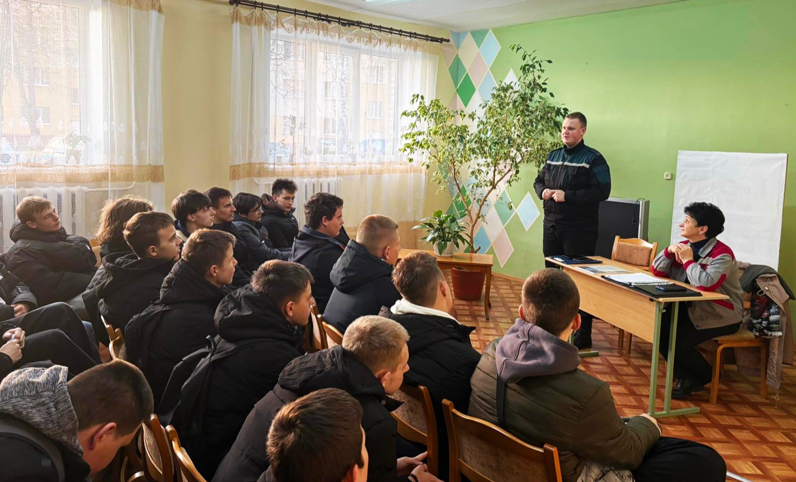 19 ноября 2025 года в общежитии №3 состоялась встреча учащихся с инспектором по энергетическому и газовому надзору Казмерчук Жанной Владимировной и инспектором СНиП Пружанского РОЧС Особиком Артемом Леонидовичем.